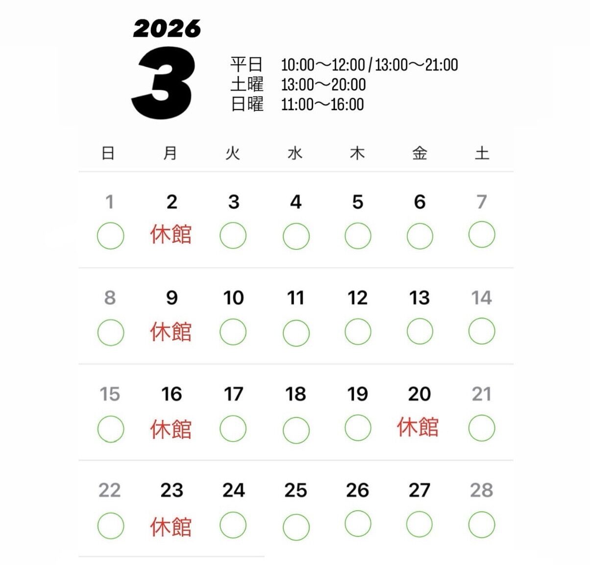 3月のお休みのお知らせです📢